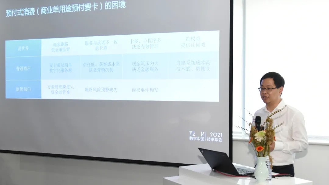 9月29日,由神州控股、神州信息、集团联合主办的“TECH数字中国 2021技术年会”之“场景创新·赋能高质量发展”的主题论坛在京召开,现场,神州信息重磅发布了基于区块链技术和数字人民币应用的预付式消费服务平台,以更好地满足消费者多元化场景消费需求,促进预付式消费新生态的健康发展,打造数字化智慧生活。